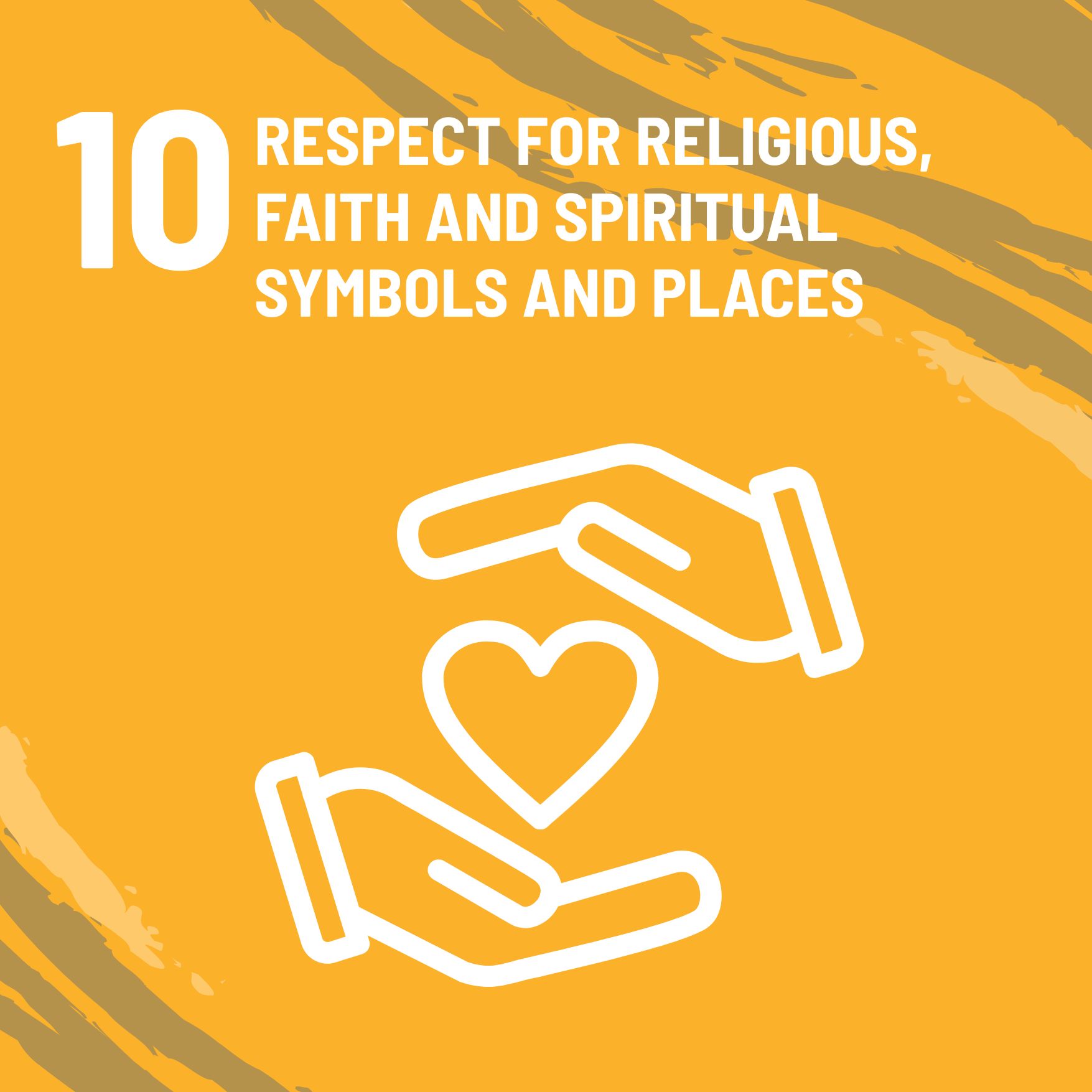 Ensure treatment of religious, faith and spiritual symbols with respect and sanctity. Collaborate between religions and faiths to protect spiritual and religious symbols, houses of faith and worship, sanctuaries and cultural sites.