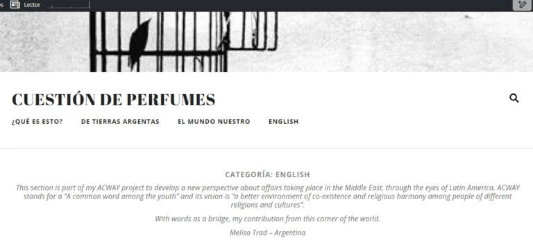 In 2010, I created a blog for political analysis of Argentinean affairs. For we cannot remain thinking only about our corner, my ACWAY project expanded it and developed a new section called “Our world”. From an Argentinean perspective and attractive to Argentinean eyes, I wrote (and write) articles that combine cultural and political aspects from Middle Eastern countries so as to fight stereotypes regards the Arab world. The articles were born from interviews I had with people that shaped my journey through the Middle East and shared their story with me. They have been published in Spanish and English versions. The local media also reproduced some of my articles and interviewed me because of them.